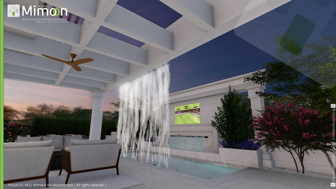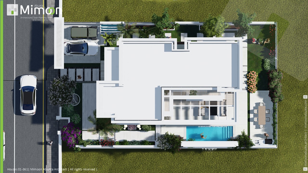 خرائط نهائية مفصلة تشمل الأثاث وصور ثلاثية الأبعاد ملوّنة تشمل المواد والحدائق